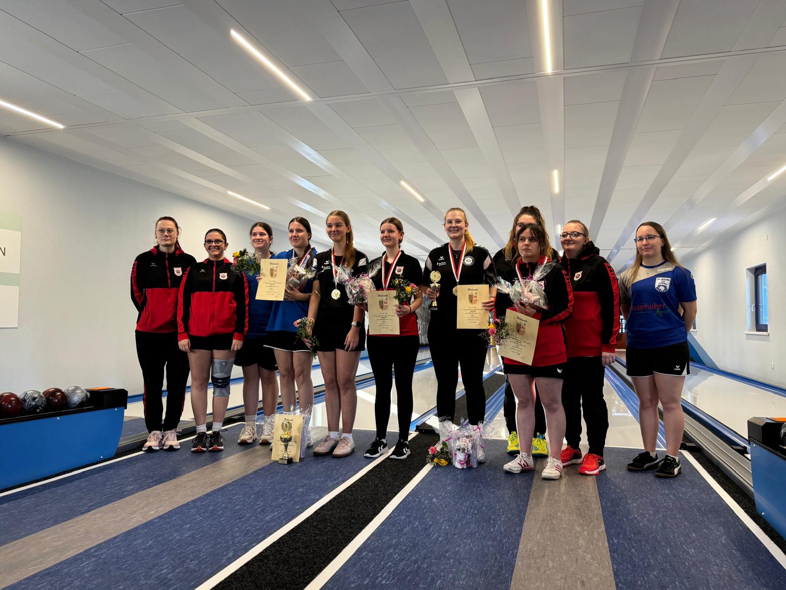 Richtig spannend wurde es dann am Finaltag. Emelie Zurawski vom ESV Lok Falkenberg, in der Vorrunde mit 515 Holz Letzte, musste im ersten Durchgang auf die Bahn und setzte ein großes Achtungszeichen. Mit 582 Holz kam sie nahe an das Vortagsergebnis von Lina-Marie heran und konnte in der Summe damit 1097 Holz vorweisen. Auf Bahn 4 erzielte sie dabei mit 175 Holz eine neue Bestleistung in der nicht nach Alter und Geschlecht getrennten Statistik. Ebenfalls steigern konnte sich Hanna Golda SV Lokomotive Uebigau von 528 Holz aus der Vorrunde auf finale 571 Holz und somit 1099 Holz in der Gesamtwertung. Zum Schluß spielte die Vortagsbeste und konnte mit 552 Holz im Finale ein Gesamtergebnis von 1144 Holz erreichen. Dieses reichte zum ungefährdeten Titelgewinn. In der Altersklasse „U19“ kam es zu einem Start-Ziel-Sieg. Shiva Klein vom ESV Lok Elsterwerda spielte an beiden Tagen mit 552 und 584 Holz das jeweils beste Ergebnis. Mit gesamt 1136 Holz konnte sie alle Konkurrentinnen im Kampf um den Kreismeistertitel sicher in die Schranken verweisen. Sarah Mai vom SV Lokomotive Uebigau in der Vorrunde mit 496 Holz nur Vierte konnte sich steigern und erspielte mit 531 Holz das zweitbeste des Finales. Mit 1027 Holz kam sie auf den zweiten Platz. Nur knapp mit 4 Holz weniger erspielte sich Sophie Lange vom ESV Lok Falkenberg den dritten Platz mit 1023 Holz. Alles in allem ein spannender Wettkampf mit knappen Entscheidungen beim Kampf um die Platzierungen hinter der jeweiligen Kreismeisterin.